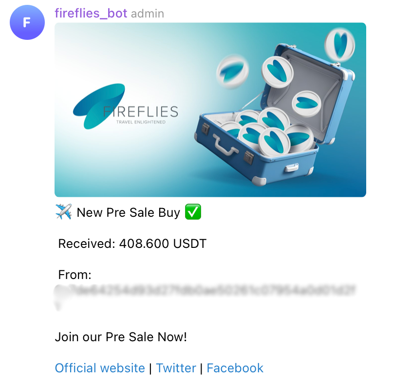 FireFlies Telegram Bot: This Telegram bot keeps your community informed about activity in your crowd sale! It automatically fetches data directly from your crowd sale contract and publishes transaction details in the telegram chat. Java script and BCS smart contract blending together to cater reliable and trust worthy bot application to cater the client requirement.