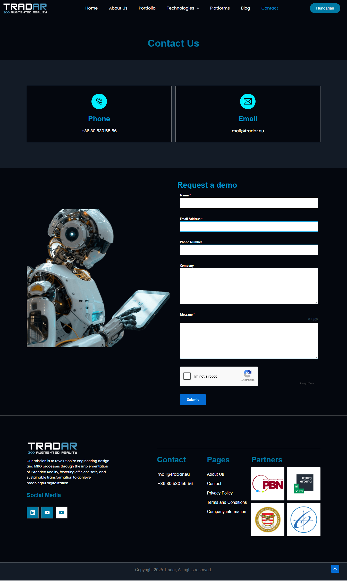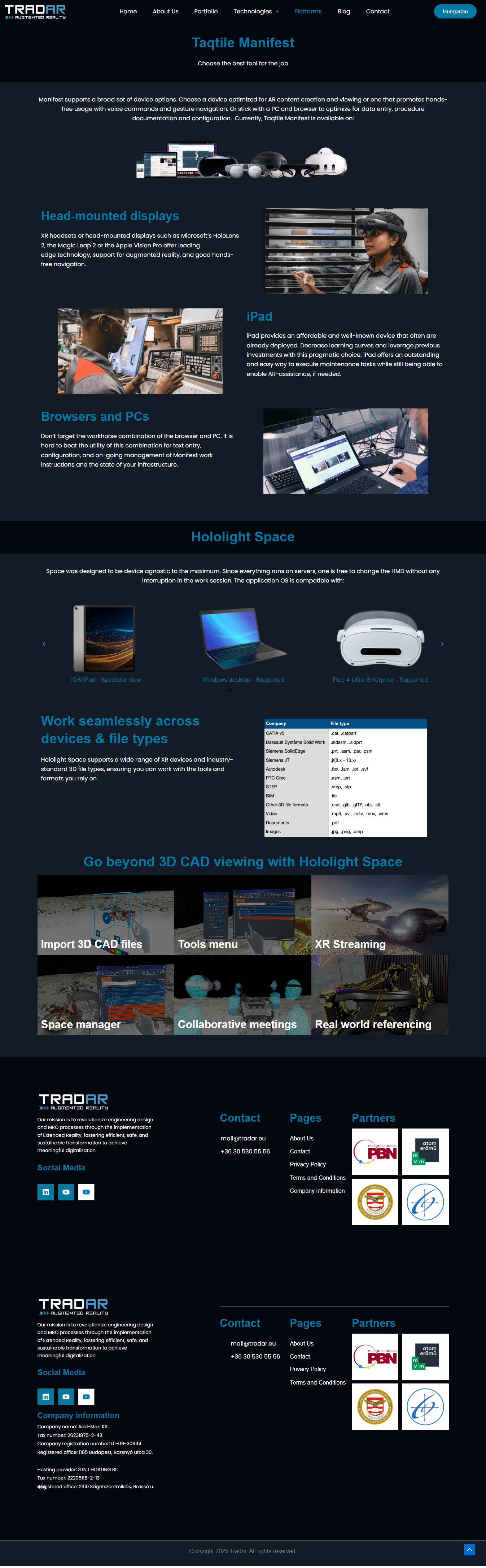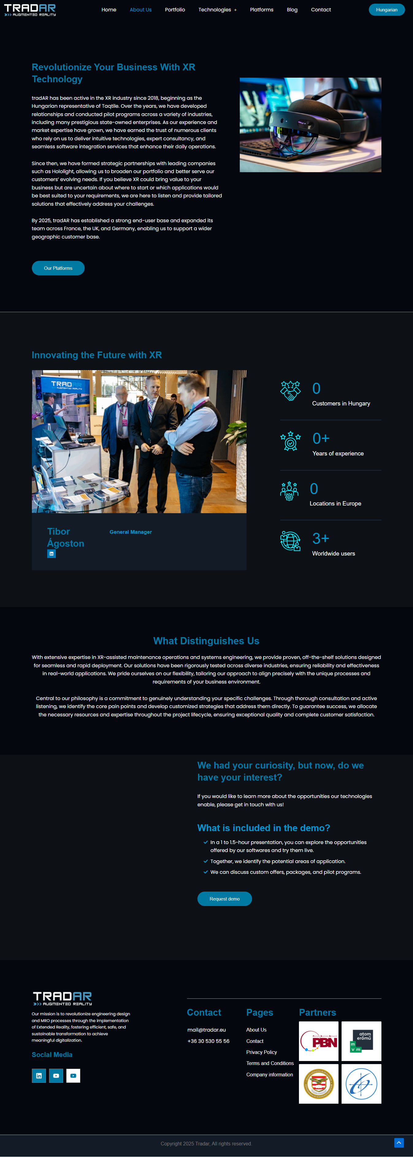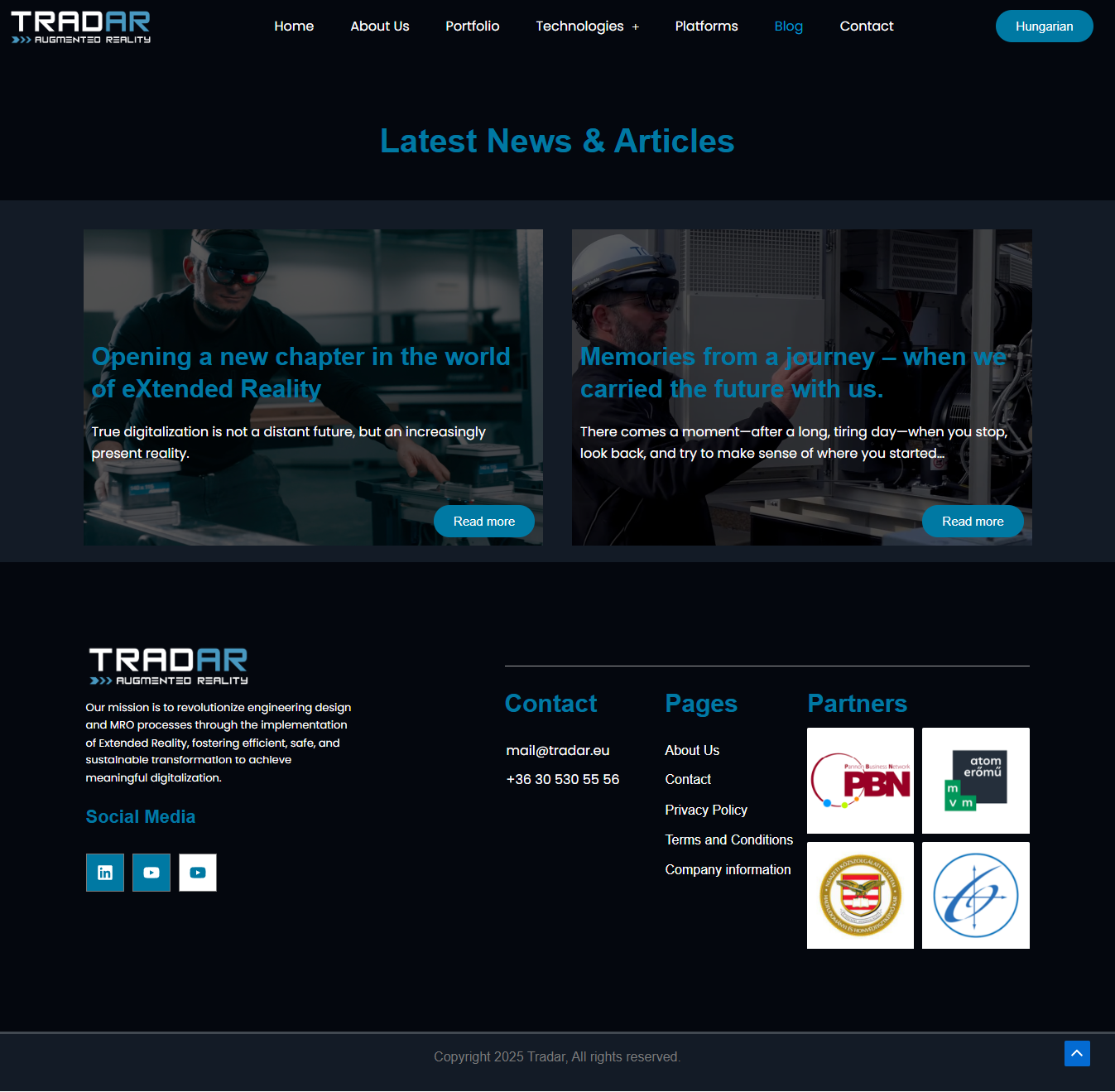 We were tasked with elevating Tradar's existing, outdated, Hungarian-only website to a modern, international level. During the project, we re-envisioned the entire visual identity and user experience, creating a clean, responsive design. The old content was restructured into a new, much more transparent and user-friendly framework. The most significant advancement was the full bilingual implementation, which allows the site to effectively reach its English-speaking audience.